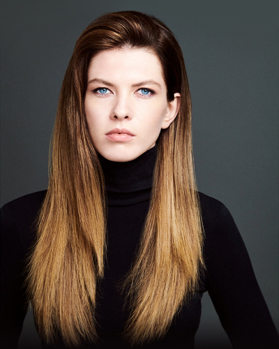 В «слоистой» форме удлиненного каскадного каре изначально заложены динамика и объем, а смена направления пробора модернизирует стрижку.
