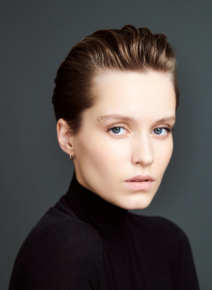 Асимметричный стайлинг с легким прикорневым объемом и волнообразной челкой выглядит необычайно женственно и при этом лаконично. Стилистика образа одинаково хороша и для деловых сетов и для особых случаев.